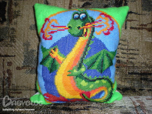 Такой яркий дракончик!!!Замечательная подушечка!!!