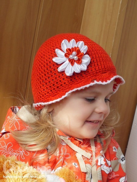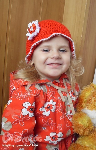 Замечательная шапочка, а цветочек прямо с курточки на шапочке распустился.
