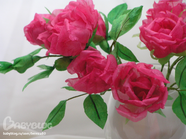 Мне тоже нравится,из тончайшего шелка они такие легкие кажутся))))еще белые розы делаю сюда же.