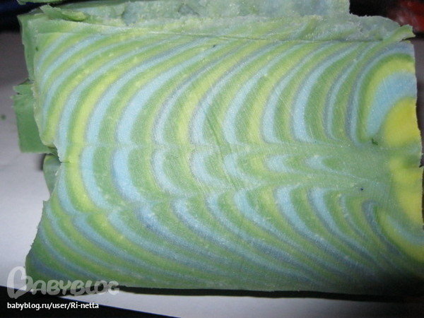 Мыло и косметика своими рукамиА у меня вот такое мылко получилось ))) С первого раза свирлы не вышли, все колом встало, но вот рецепт подобрался.