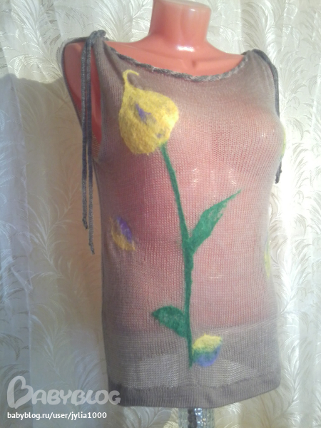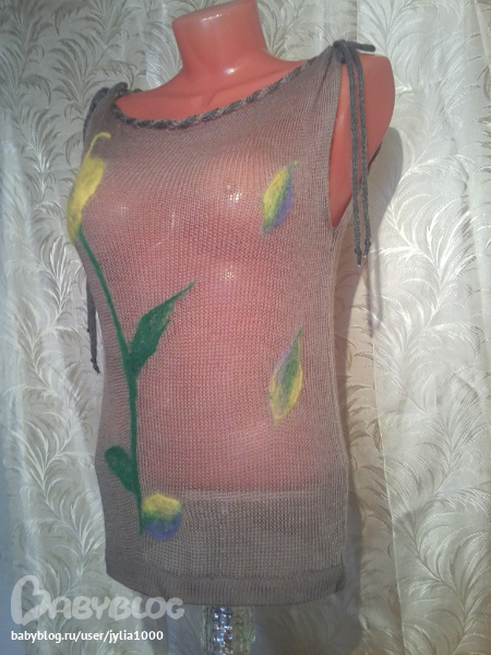 решила сначала иголочками "потыкать"а потом мокрым валянием завершила процесс истязания над майкой