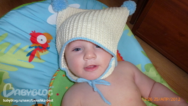 так я же написала какой рисунок. вот этим рисунком связать прямоугольник и сшить сзади и верх, привязать уши и заязки, приделать пумпоны