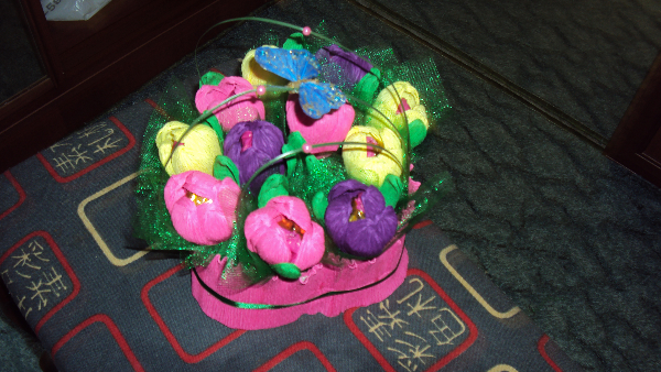 спасибо за комментарий!приятно то как!как и цвет корзины цвет бабочки не поменяю))))) я ее еле приклеила, все пальцы в супер клее, я эту бабочку приклевала полчаса,))))да если честно в магазине был небольшой выбор этих бабочек...Надеюсь, что подруге понравится моё творение