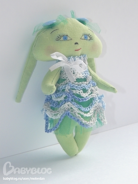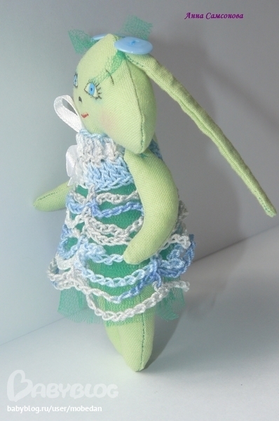 Вы только, пожалуйста, не обижайтесь.. у вас зайка-инопланетянка получилась.. такая зелененькая