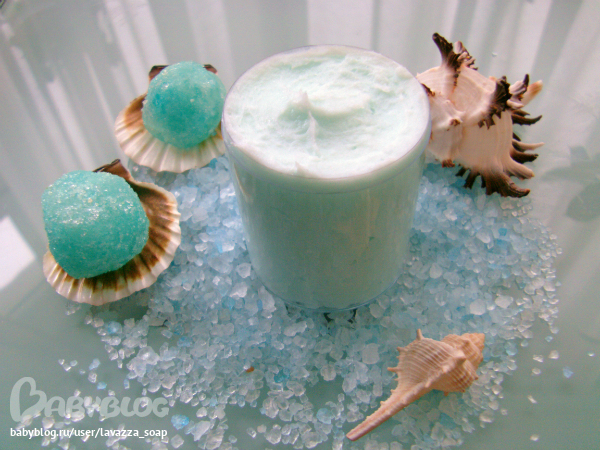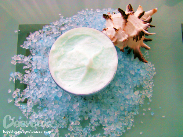 - нежный скраб-суфле для тела с морской солью и сухими сливками (состав: кремовая основа, масло виноградной косточки, масло миндаля сладкого, масло кокоса, сухие сливки, морская соль. Скрабящее вещество-измельченная морская соль+полиэтиленовые гранулы. Аромат: океан.)