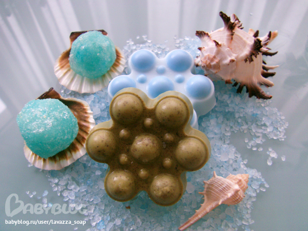 - массажное мыло с белой глиной и морской солью (масла: кокоса, пальмоядровое, ши(каритэ), виноградной косточки натуральные добавка. аромат: океан).
