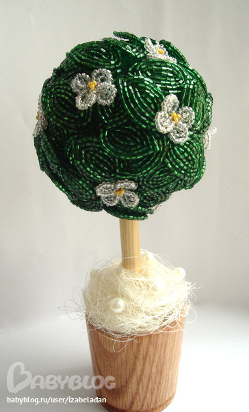 Внутри шар из пенопласта (диаметр 7см.), покрашен зеленой акриловой краской. Пробовала красить гуашью, но она пачкается.