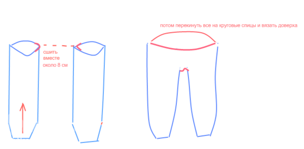 Девочки, вяжу малышке коротенькие бриджи на лето, распустила наверное уже раз 10, подскажите как правильно соединять половинки штанишек (нам на памперс), чтобы сели хорошо??? я вяжу по кругу каждую штанину снизу вверх, или правильнее вязать от талии? может у кого выкройка есть на 1 годик, кто вязал подскажите)))))