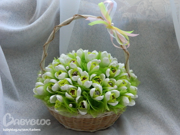 Чессс слово, давно хотела показать свои "сладости", но времени катастрофически не хватает(не из-за букетов, о причине расскажу позже). Как тут многие уже знают, мой муж-мой волшебный пендель. Он меня снабдил первыми заказами, уломал создать группу "в контактах"-короче, ЖМОТ, хочет оправдать денюжку потраченную на материал.Ну вот мои работы: