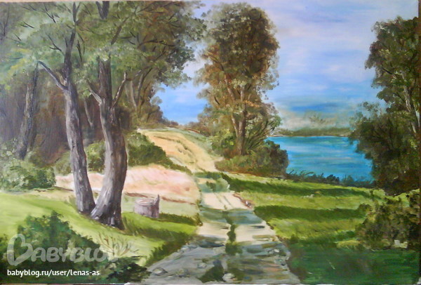 Живопись, точечная росписьЭтой работе 2 года.Ее размер 70Х100см.Рисовала для себя.Назвала "Тропинка в лесу".Но как-то на выставке один художник сказал:Да это не тропинка а дорога.."И почему мне именно тропинкой назвать захотелось?Это правда дорога.......может я просто в мыслях хотела изобразить тропинку,а получилась...то что что получилось