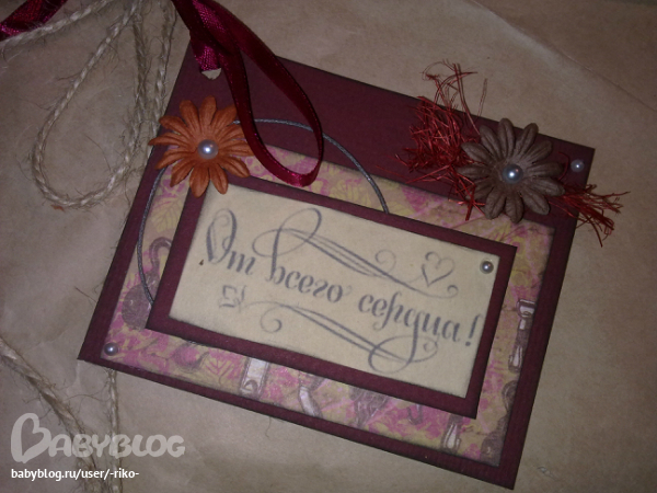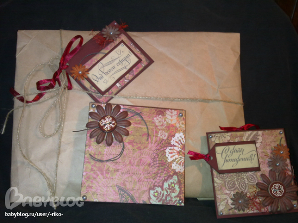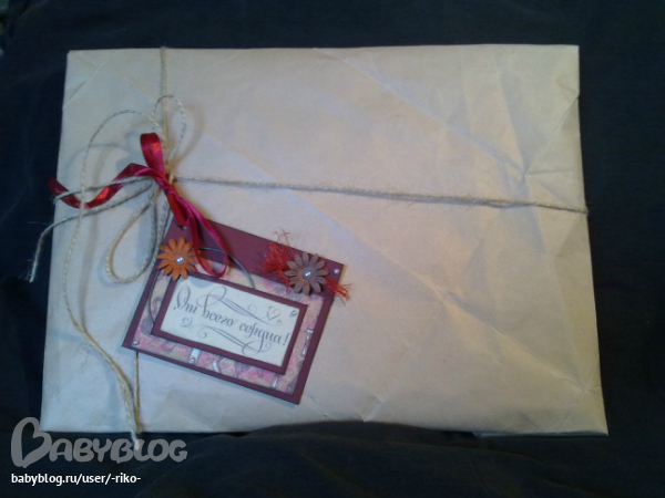 Поскольку упаковка с открыткой смотрелись плохо, сделал маленький ярлычок.