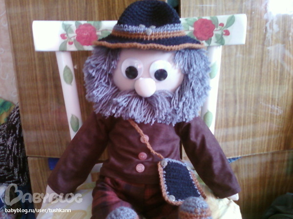 Игрушечный мир - животныеСвязала на днях для дочки вот такого дядюшку Ау. У нее этот сказочный персонаж на сегодняшний момент самый любимый! Долго сомневалась стоит ли вообще начинать, так как работа мне показалась сложной, а мои навыки вязания минимальные. В итоге, как говорится, глаза боятся, а руки делают...Многое получилось не так как хотелось, но я рада, что мой леший похож на такого самого лешого из сказки и дочка его сразу узнала и сразу сталапа с ним играть, я даже не успела пришить дядюшке нашему рот с зубиком, но ничего. Еще планирую заменить ему бороду с шерсти на травку какую-нибудь, уж больно сильно шерсть эта вылезает.