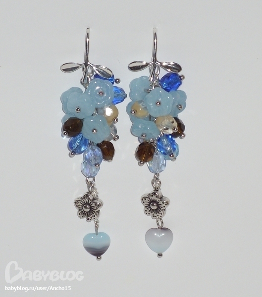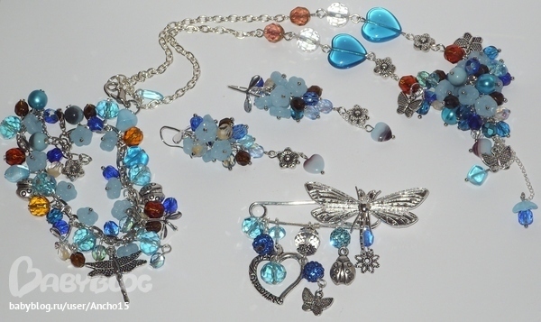Комплект выполнен из гранёных бусин(имитация сваровски), стеклянных бусин, стразовых бусин и фурнитуры под серебро.