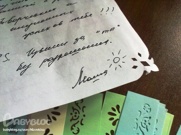 Тут и ткани для Тильдочек, и дырокольности класснючие, и стразики, цветочки, пуговки, вообщем всего-всего много, а собенно письмецо, которое так греет душу в эту холодную уральскую погоду!!!