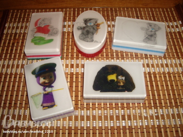 Марина в Рукоделие 13 лет Наборы Мыло и косметика своими руками Посмотрите еще 20 записей на эту тему Отменить Ответить Оксана СУПЕР!!!!! Маша и черно-белое мои фавориты!!!!!!!!!!!! 14.06.2012 Ответить Марина спасибо. Машу почти с руками отрывают))) 14.06.2012 Ответить Юлия Марин очень красивые мыльца, впрочем как и всегда, а черное с белым мыло это как сделано? тоже картинка? 12.06.2012 Ответить Марина спасибо. Да сверху картинка, а потом заливала наискосок черным и белым цветом 12.06.2012 Ответить Olgasun качественная заливка, и фоточки хорошенькие, мне понравилась идея с бамбуковым ковриком 12.06.2012 Ответить Марина Спасибо ))) 12.06.2012 Ответить Мое первое мыло с водорастворимой картинкой и розочка. Первый ручной гидролат Чаты Беременных Выберите чат: Январята-2026 Февралята-2026 Мартята-2026 Апрелята-2026 Майчата-2026 Июнята-2026 Июлята-2026 Августята-2026