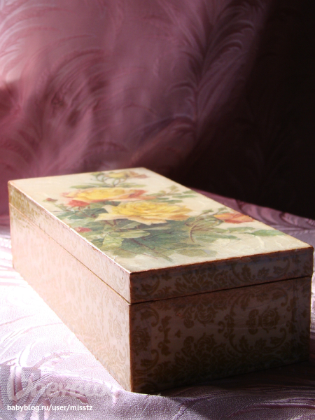 Ритусик в Рукоделие 13 лет шкатулка Декупаж Посмотрите еще 20 записей на эту тему Отменить Ответить Катя Она все никак не остановится!)))) 19.06.2012 Ответить Ритусик неее)вот сейчас перерывчик))) 19.06.2012 Ответить Катя смотри Димку не задекупажируй!!!!)))))))))) 19.06.2012 Ответить Ритусик он меня полностью устраивает))поэтому трогать его не буду))) 19.06.2012 Ответить Катя 19.06.2012 Ответить PARIS11 ШИКАРНАЯ! НЕЖНАЯ! ПОТРЯСАЮЩАЯ ШКАТУЛОЧКА! 19.06.2012 Ответить Ритусик спасибо огромное огромное!!!мне очень приятно))) 19.06.2012 Ответить Людмила Сгибнева Ритусь, очень красивая шкатулочка! люблю эти розочки и салфеточку эту тоже :)) 16.06.2012 Ответить Ритусик спасибо огромное)))) 16.06.2012 Ответить Евгения красота Рит! 15.06.2012 Ответить Ритусик спасибочки Жень))) 15.06.2012 Ответить Наталья 15.06.2012 Ответить Ритусик спасибо большое!! 15.06.2012 Ответить Виктория Очень красиво!!!!! 15.06.2012 Ответить Ритусик спасибо Викусь)) 15.06.2012 Ответить Шкатулочка Серия Карты))Пиковая дама! Чаты Беременных Выберите чат: Январята-2026 Февралята-2026 Мартята-2026 Апрелята-2026 Майчата-2026 Июнята-2026 Июлята-2026 Августята-2026