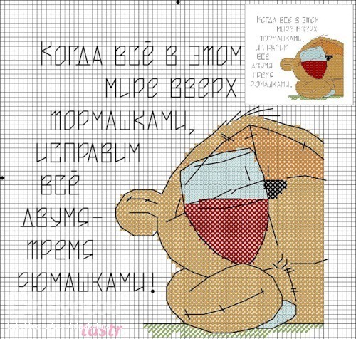 ой девчонки, мишка и вправду прелестный))я своему такого тож дарила на ДР, хотя отношения идеальными назвать нельзя...всяко случается, но удовольствие получили оба - я от процесса, он от неожиданного подарка) и с пуговками маман тоже получила, и того с бокалом тоже в плане себе забацать) уж очень он к месту будет временами)))