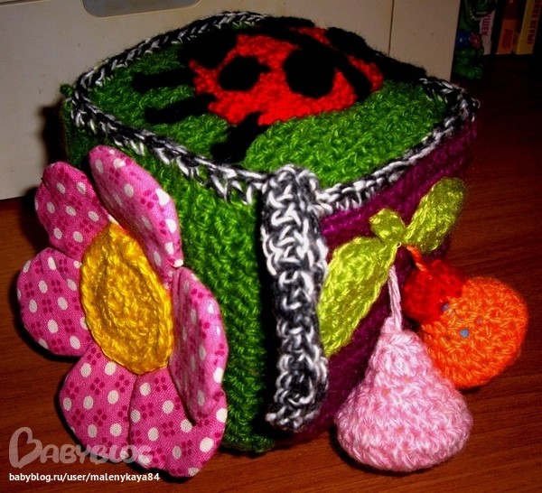 Делала я его долго. Вот сегодня "добила"))))). Получила огромное удовольствие!!! Игрушек развивающих раньше не делала, насмотрелась, захотелось и мне. Моим ребятишкам кубик понравился, только мы его подарим - племяннице мужа. Ей скоро годик исполняется! Критики боюсь, поэтому о косяках прошу помягче))) Ну, смотрим.)))