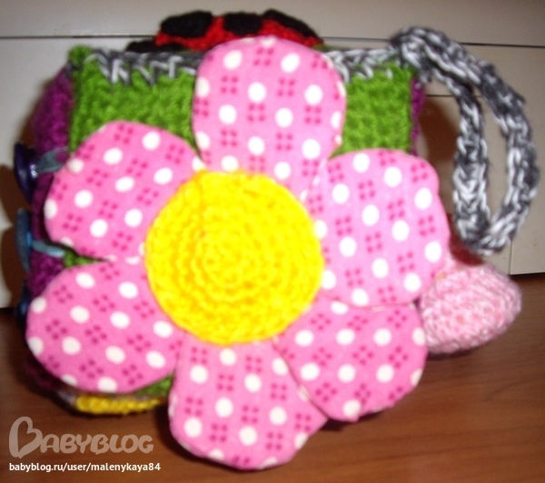 Сторона 4 - опять цветок. Лепестки шуршат. Внутри поролон и целофан.