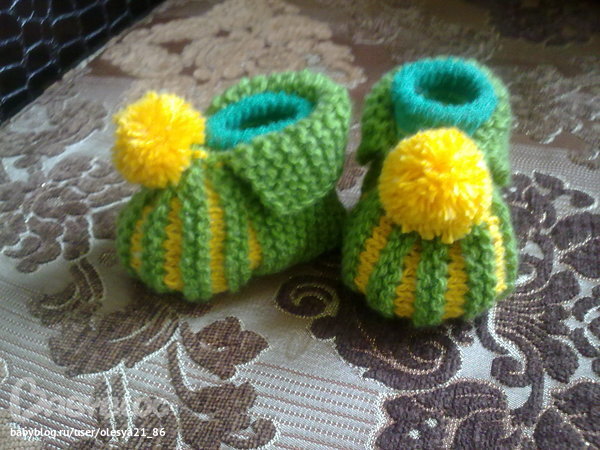 Они очень легко вяжутся. http://www.babyblog.ru/user/Dellta/2159037 - вот здесь девочка очень подробно описала, только кол-во петель я убавляла... ну и рядов тоже))) иначе с моей толщиной ниток и спиц на меня пинетки получались. Вот по этим размерам вязала:
