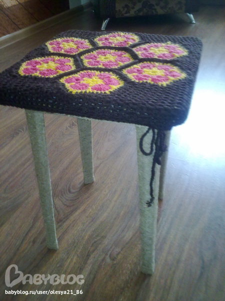 Тренировалась соединять мотивы я на чехле для табуретки... Воть и он: