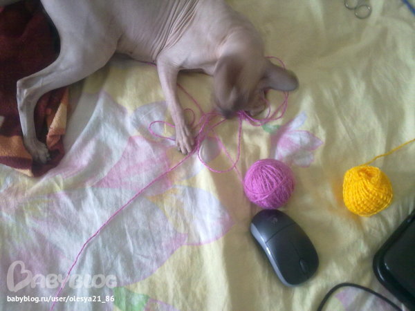 Алиска как обычно помогала: кушала пряжу и просто дрыхла!!! )))