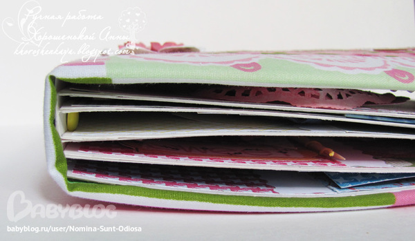 Тканевая обложка далась мне труднее всего, видимо я сильно перетянула ткань, и он немножко скривился(((