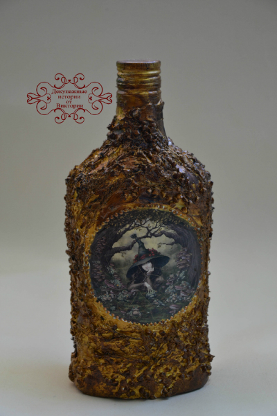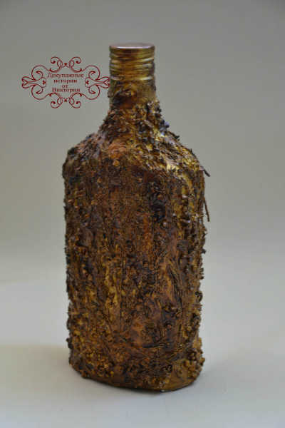 ДекупажБутылка-конкурсная работа. Выполнена в технике "Терра". Подробный МК по декорированию бутылки в данной технике можно найти в он-лайн школе декупажа http://www.babyblog.ru/community/post/decoupageschool/1697162
