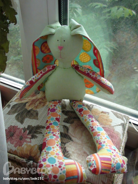 Игрушечный мир - животныеСшила зайку,получился очень позитивный.Отличная игрушка для малышей,хорошо подходит как "игрушка для сна".Рост 34см,с ушами 51см)) Натуральные ткани-хлопок,наполнитель-синтепух.