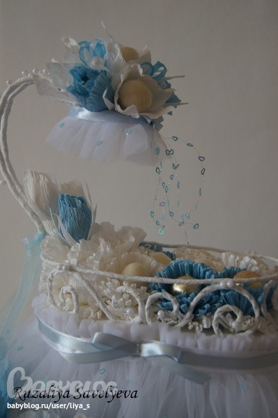 Вдохновленная сообществом и несколькими мастерицами, сделала такую композицию и подарила сегодня друзьям, у которых несколько дней назад родился малыш!! Он такой сладенький!!! Теперь вообще от мужа не отстану-хочу второго)))