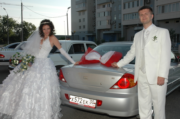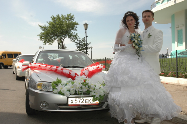 все быскала, нет нормальных фоток((( у меня свеча была красная большая, украшала белыми ленточками и стразиками...бомбоньерки делала белый+красный фатин, внутрь мы клали конфетки и сердечки и завязывали как конфетку (трюфель) красной и белой ленточкой...на машину оже сами делали украшение...