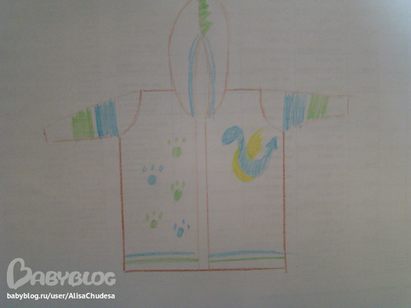Эскиз был таков, может кто воплатит, мы с заказщицей решили что аппликашки на получившейся кофте лишнее