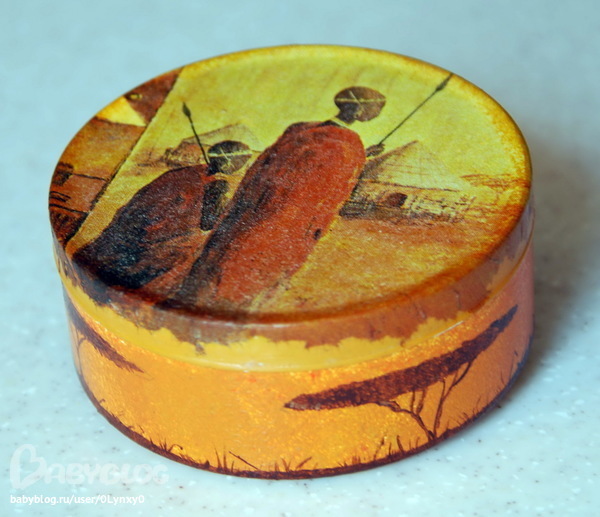 На крышке - салфетка, остальное нарисовано акриловой краской)