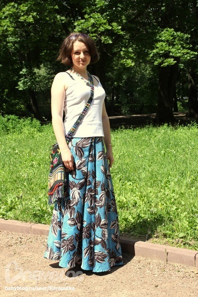 Шитье одежды, выкройки, ремонт одежды, шторы, швейные машины (уже приобретенные)Я за модой особо никогда не слежу. Считаю, что у каждого человека должен быть свой стиль и вещи следует носить, которые по-настоящему идут именно тебе, подчёркивают достоинства и скрывают недостатки. А покупать то,что сидит на тебе, как на корове седло, но зато модно - по-моему, верх глупости))))))))))))) Но в этом году я почему-то поддалась общей тенденции модных юбок в пол и решила,что мне такая жизненно необходима.Хотела шить сама,но т.к. я в этом деле профан и поджимало время (через пару дней уезжали в Одессу) , любимая свекровь помогла мне эту идею осуществить.Спасибо ей любимой, что для меня старалась и за один день произвела её на свет))) Вот сие творение: