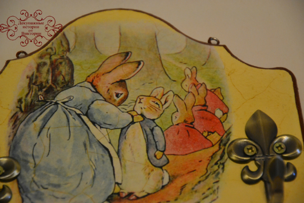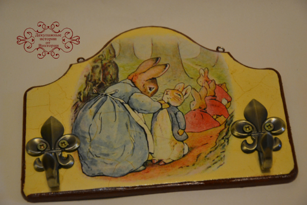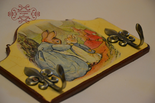 ДекупажМожно использовать как вешалку на кухне для полотенец, как вешалку в детской, так и ключницу.