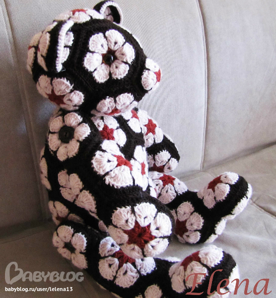 В процессе изготовления выяснилось, что у меня напрочь отсутствует пространственное воображение, в связи с чем некоторые части пришлось перевязывать несколько раз. Могу сказать, что плед связать было намного проще)))
