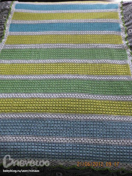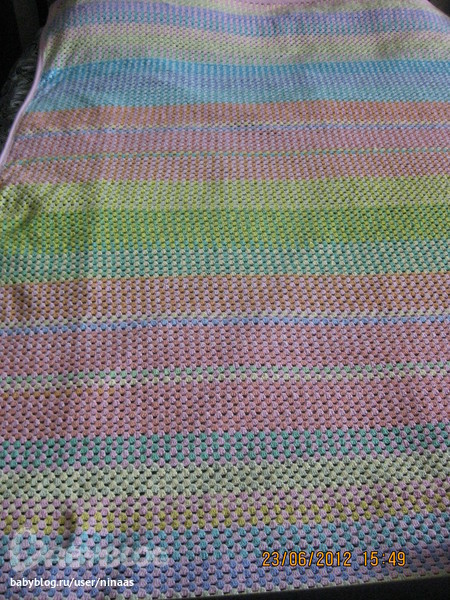 Да с цветами бабули угодили на 100%, хотя я про цветовое решение ничего им не говорила. У Кристюши в комнате белая мебель и стол пластик. зеленый с табуретками, и эти пледики просто супер как подошли!