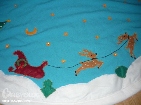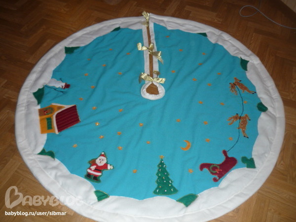 , остальное фетр. Тяжелее всего было отыскать белый флис - нашла в икее плед по цене до 200 руб. Косяки есть, но думаю особо присматриваться под елкой не будет. Коврик понравился всем, особенно детям и котенку.