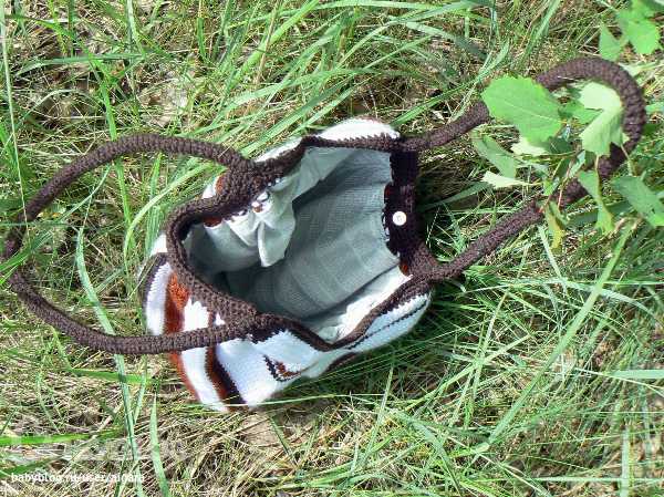 Нитки (акрил) - 250м/100гр, подклад - плотный хлопок. В ручках-плетеный шнур. Магнитная кнопка.