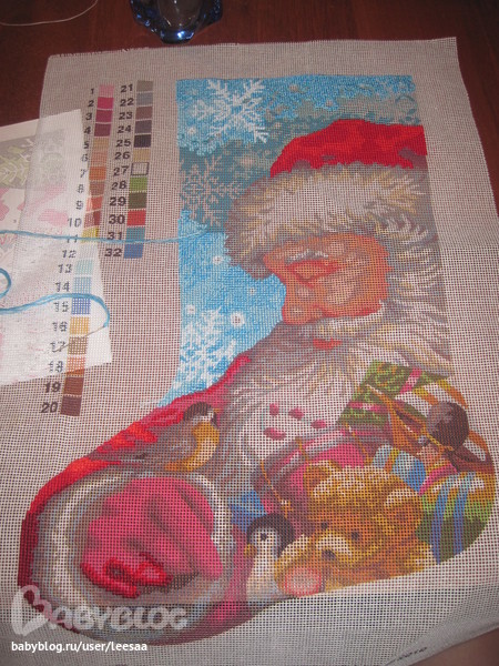 Кто-то спрашивал, почему выбрала 16 канву. Ну, я вообще предпочитаю именно 16 или равномерку, на 14 уже неинтересно вышивать. Да и на 16 она все-таки хоть чуть-чуть, но будет поменьше, на 14 вообще огромная бы была.