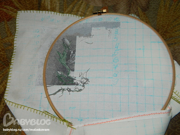 Неее, я привыкла по цветам вышивать, да и когда вышивала первую авантюру придумала как это по быстрому сделать - рисую все крестики на канве исчезающим маркером и ни ошибок и в монитор подглядывать не надо)