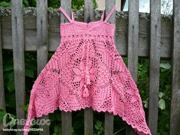 Насмотрелась я на раоты Аллы Коваль и захотелось мне такой же связать. Вот результат. Сегодня меряли маленькие соседки всем двором. Хорошо смотрится и на девочке 4 лет и 8 лет, но худенькой.