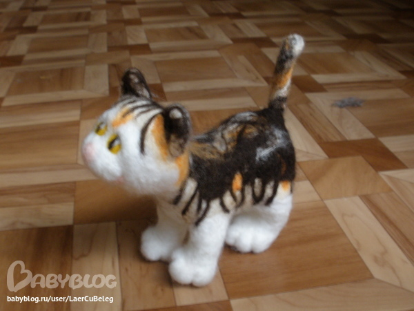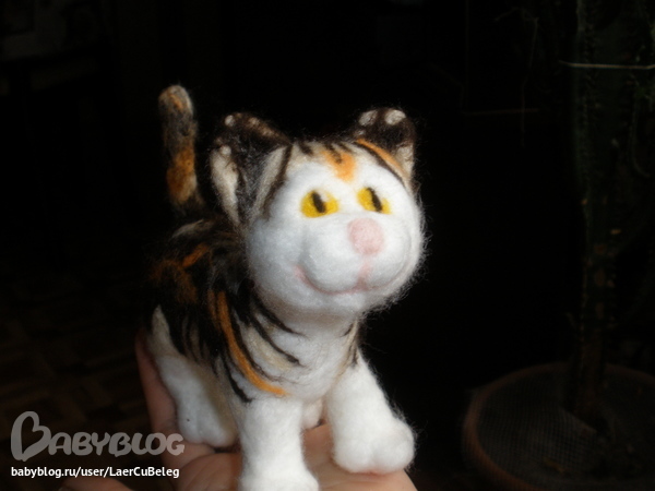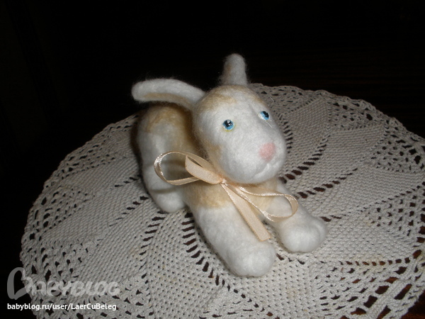 Фелтинг (валяние шерсти)давно сваляла уже, только руки дошли выложить. Котик живет теперь у новой хозяйки, зайка остался в доме.