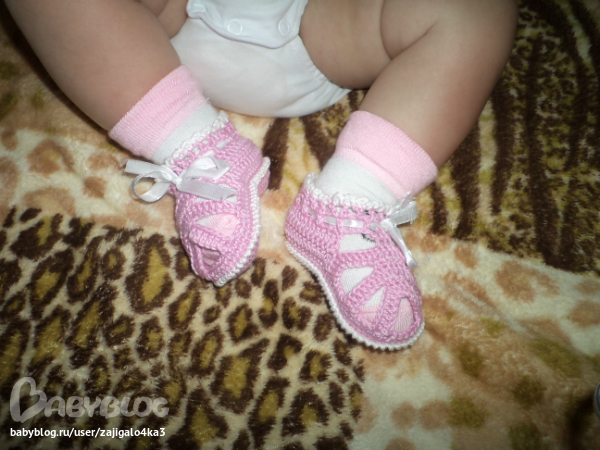 скажите пожалуйста, какая длинна и ширина подошвы сандаликов у вас? тоже такие вяжу в подарок для соседки. Она чуть младше вас.Боюсь прогодать.