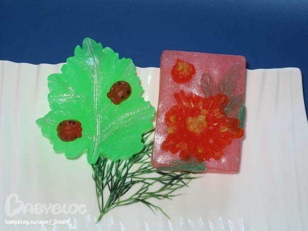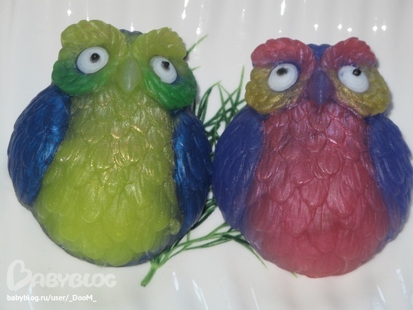 Мыло и косметика своими рукамиМыло с маслом миндаля. Пахнет: Сова с розовым брюшком и Астра - Тибетским чаем, Черный тюльпан - Тюльпаном, Сова с желтым брюшком - Гуавой, Мак - Цветком табака, Листик с божьими коровками - Липой, Клумба - Букетом.