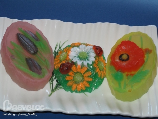 Вот как я угадала про прозрачку))) Галин, у Мамы мыло в мастер классах есть урок один, посвященный крашению мыла пигментами, можно там посмотреть, но смысл простой, развести пигменты в глицерине и кисточкой поверх покрасить, а почему ты не хочешь попробовать цветную заливку ромашек?