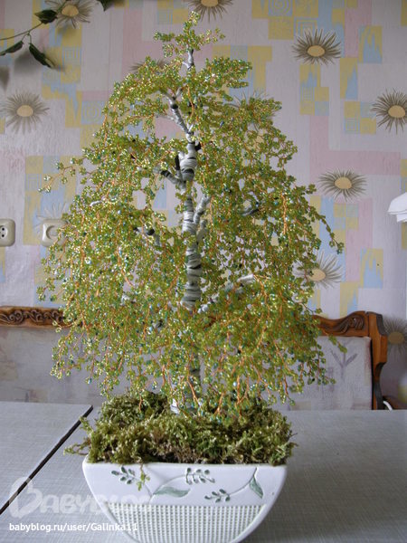 Бисер. Бисероплетение. Украшения из бисера.Вот такая берёзка у меня получилась, высота 40 см