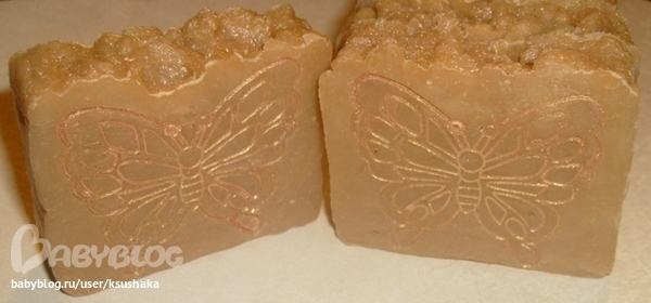 Оксан, первое мыло прелесть, такое золотистое! И мне очень понравилось первый твой опыт с валянием, тигровое получилось! Второе ваще класс! Ну а с трафаретом...ты как всегда новатор идей!!!