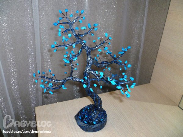 спасибо! каркас из проволоки обматываю лейкоплыстырем, покрываю разведенным с клеем ПВА алебастром, формирую кору, затем слой клея ПВА. Высохший ствол крашу гуашью или акрилом, покрываю лаком, серебристой или бронзовой краской.