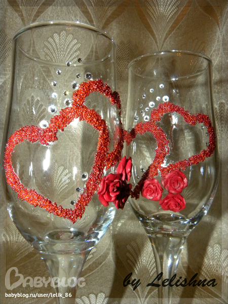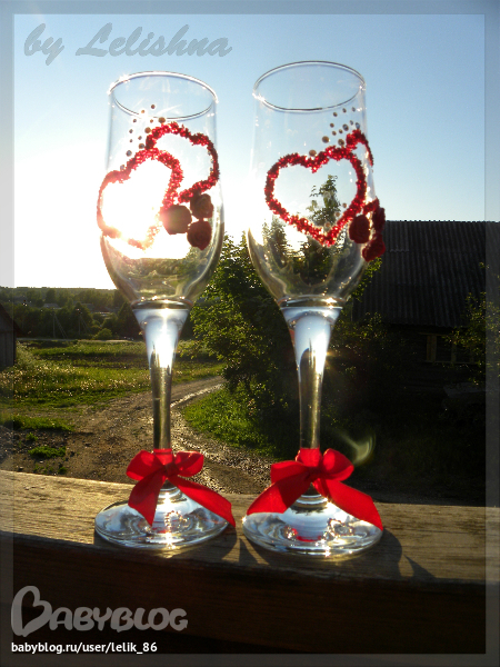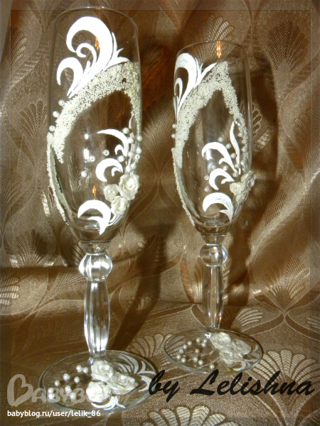 небольшая предистория))) бокалами давно хотела занятся, но времени совсем не было((( вплотную занималась мыловарением! а сейчас нахожусь в отпуске, сижу в деревне)))) мыловарение меня ждет дома, и наконец то добралась я до бокальчиков! делать так просто абы что не хотелось, поэтому заказала стразы сваровски! ух, как же они блестят!!!! красотаааа!!!! жаль фото блеск не может передать! ну или фотограф из меня ни куда)))) вообщем вот 2-е пары бокальчиков! буду рада критике!!!! и добро пожаловать в гости в группу в контакте
